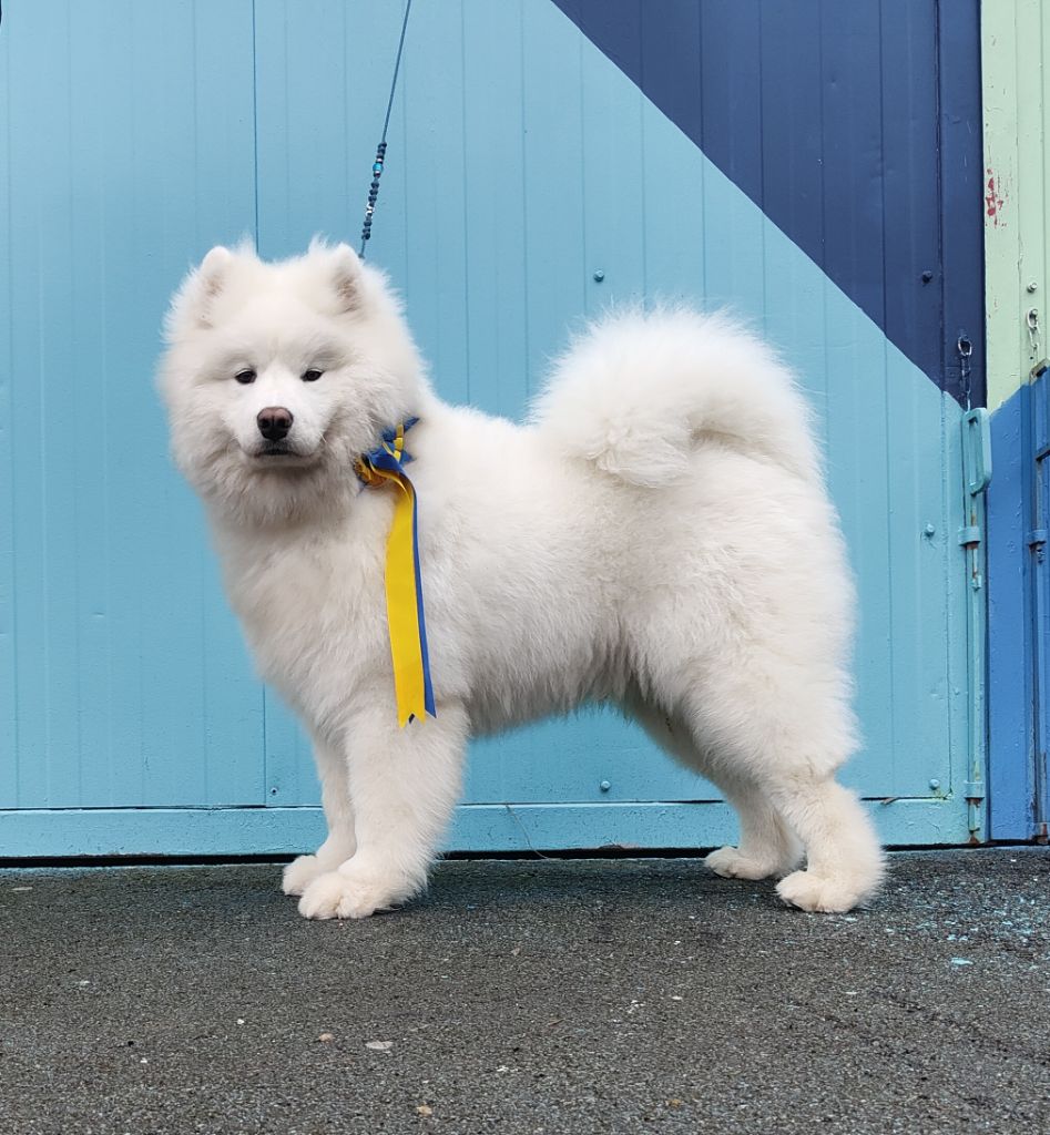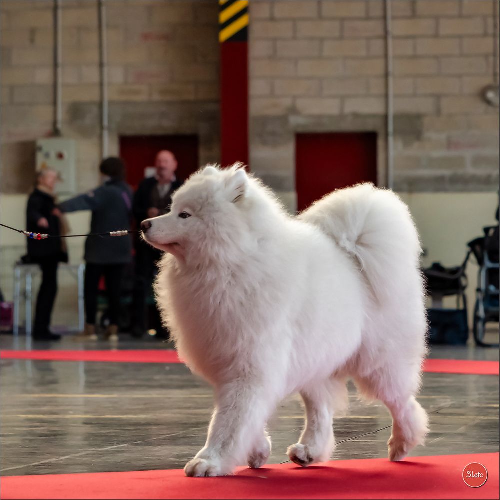 Excellente structure, excellent équilibre, excellente pigmentation, texture de poils fabuleuse, excellente ligne du dessus, le sourire est parfait, derrière il est un peut étroit mais en général c'est un excellent chien
