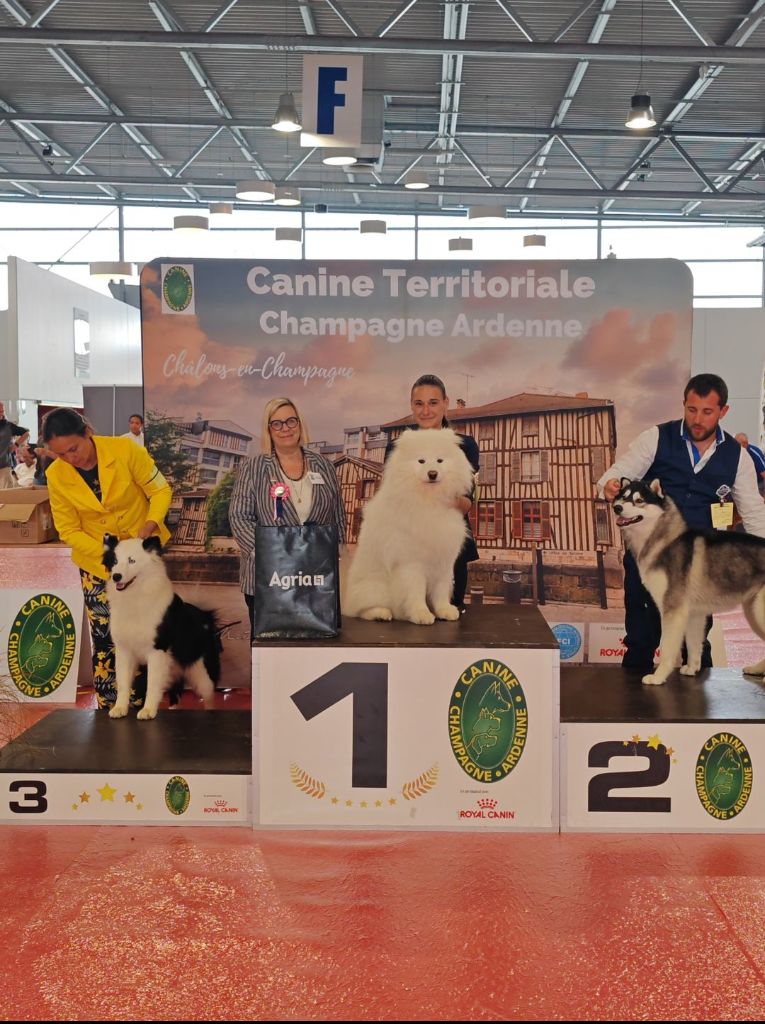 Excellent sujet, proportion, tête, oreilles bien portées, yeux bonne pigmentation, excellente denture, excellente épaules avant main et pieds, excellente poitrine et ligne du dos, excellente posture et démarche.
